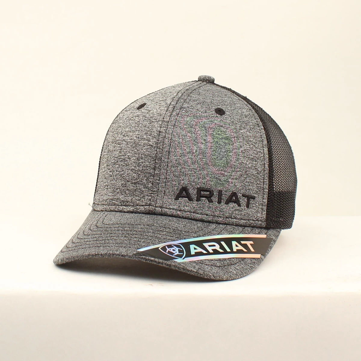 You will reach for this fashionable and comfortable Ariat cap by M&F Western Products each time you go out. There is an Ariat Text Logo embroidered on the front of the black heather cap, and a black mesh back with snap adjustments so you will get a perfect fit. You will love the all day comfort of this great cap.