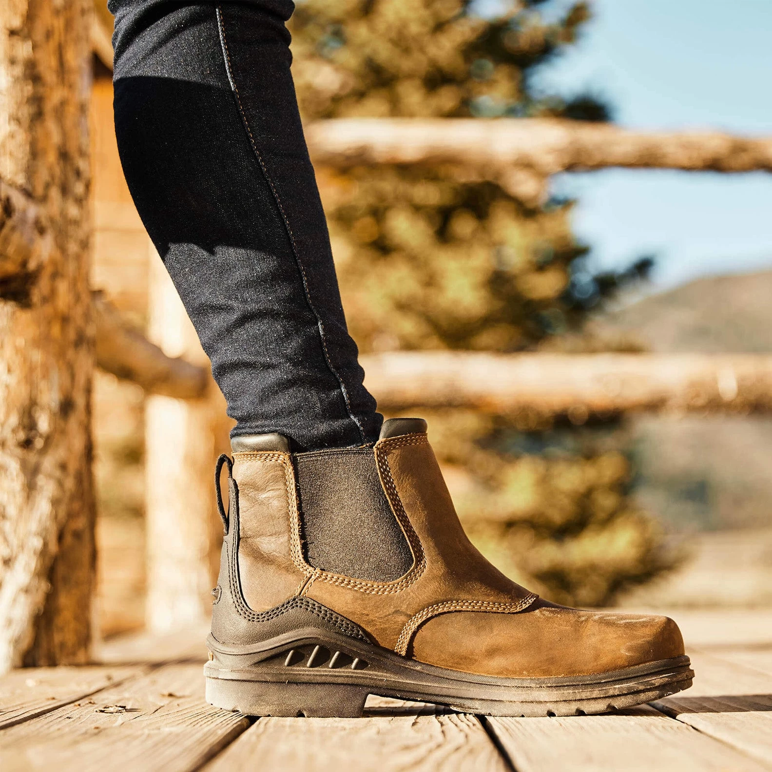 Full-grain leather with waterproof construction delivers durability and all-day comfort.