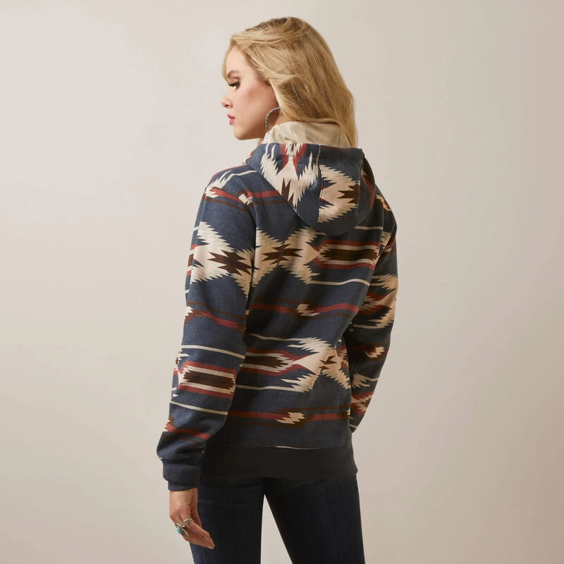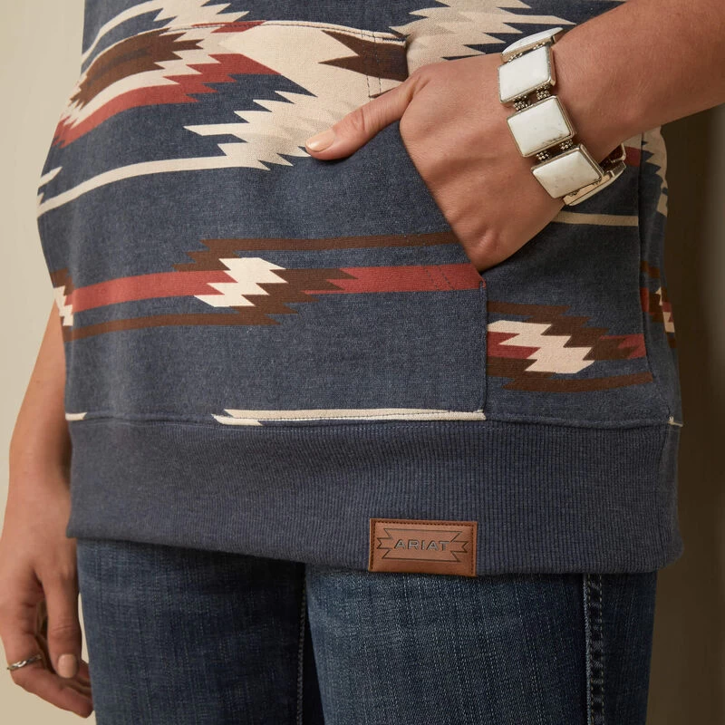 The artists at Centinela Traditional Arts created a pattern inspired by the Chimayo weaving tradition and we brought it to life on this cozy hoodie. A chunky drawcord and faux leather patch at the hem add a premium finish.