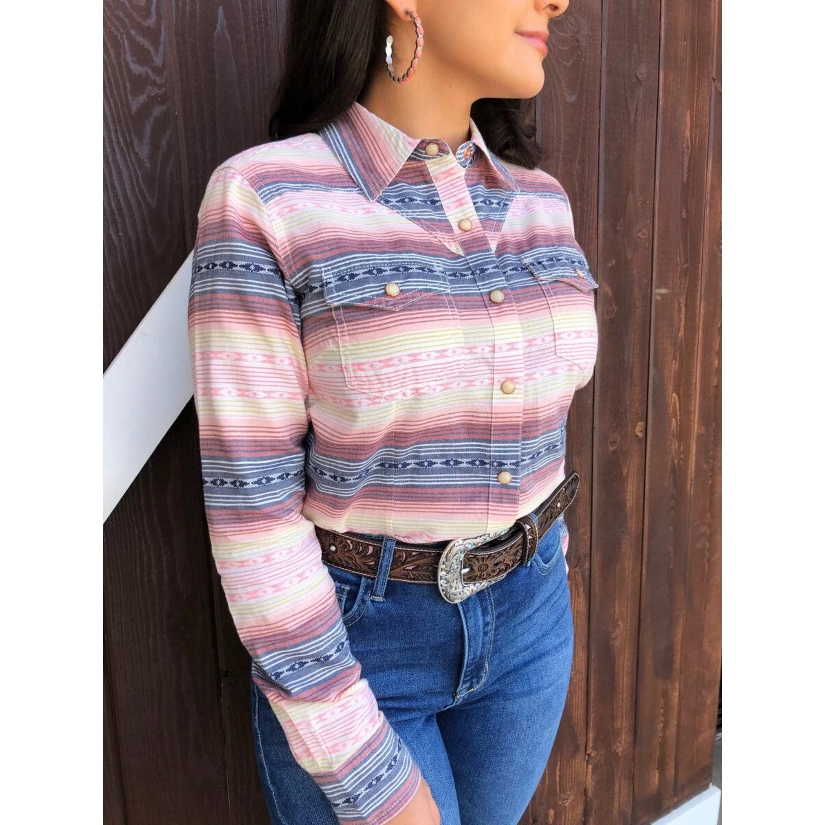 Rooted in exceptional fit, durability and style, this shirt features classic Western touches and all-cotton comfort. The fabric is especially eye-catching thanks to serape stripes woven into the smooth, satin-finish cotton. Available in plus sizes.