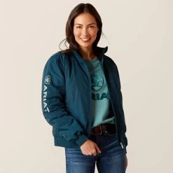 The Ariat Stable Jacket is a water and wind resistant jacket with a lightweight polyfill quilted lining. Featuring a mock collar, fitted hem and logo embroidery as well as zippered entry for team embroidery.